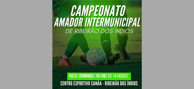 Na tarde do próximo domingo, 16 de junho, no Centro Esportivo Canãa em Ribeirão dos Índios, acontecerá o início do Campeonato Amador Intermunicipal de Ribeirão dos Índios, onde neste dia, ocorrerão os seguintes jogos: