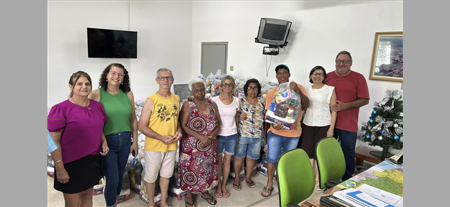 Ao total, foram entregues 600 cestas natalinas, sendo: 300 cestas para a população, através do Departamento de Ação Social e CRAS, e 300 cestas para os servidores públicos municipais.