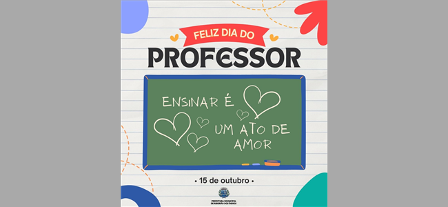 Hoje é o dia de vocês, mestres do saber, que ensinam, estimulam, encaminham e preparam nossos estudantes para a escola da vida. Nossos sinceros agradecimentos por toda dedicação e parabéns a todos, em especial, os professores da nossa Rede Municipal.