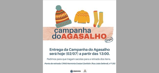 RETIRADA DA CAMPANHA DO AGASALHO INICIARÁ HOJE, 02, A PARTIR DAS 13 HORAS NA SEDE DO CRAS